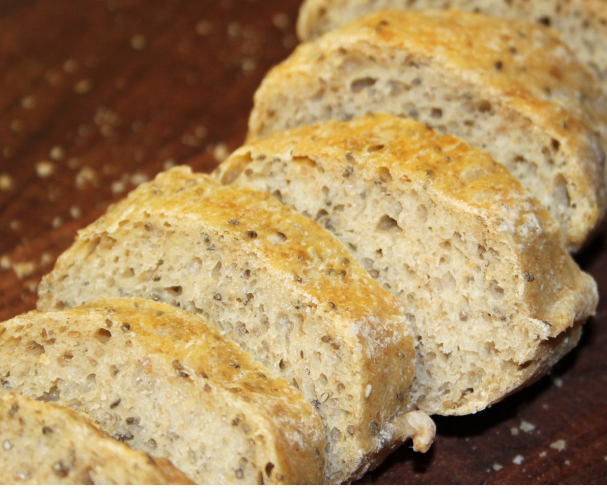 Sprøde, lækre flutes med masser af lufthuller, men samtidig også med bid og substans. Der er både chiafrø og fuldkornsspeltmel i dejen, og de sørger for både smag og struktur.