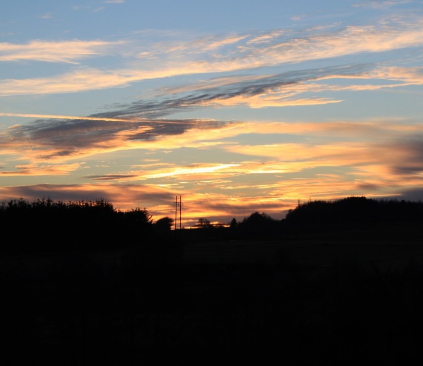 Da vi kom hjem til os selv, tændte vi også lys i vinduerne. Det var så småt begyndt at mørkne, og stearinlysenes glød var smuk mod den nu mørkere himmel, der stadig havde rødt skær mod vest.