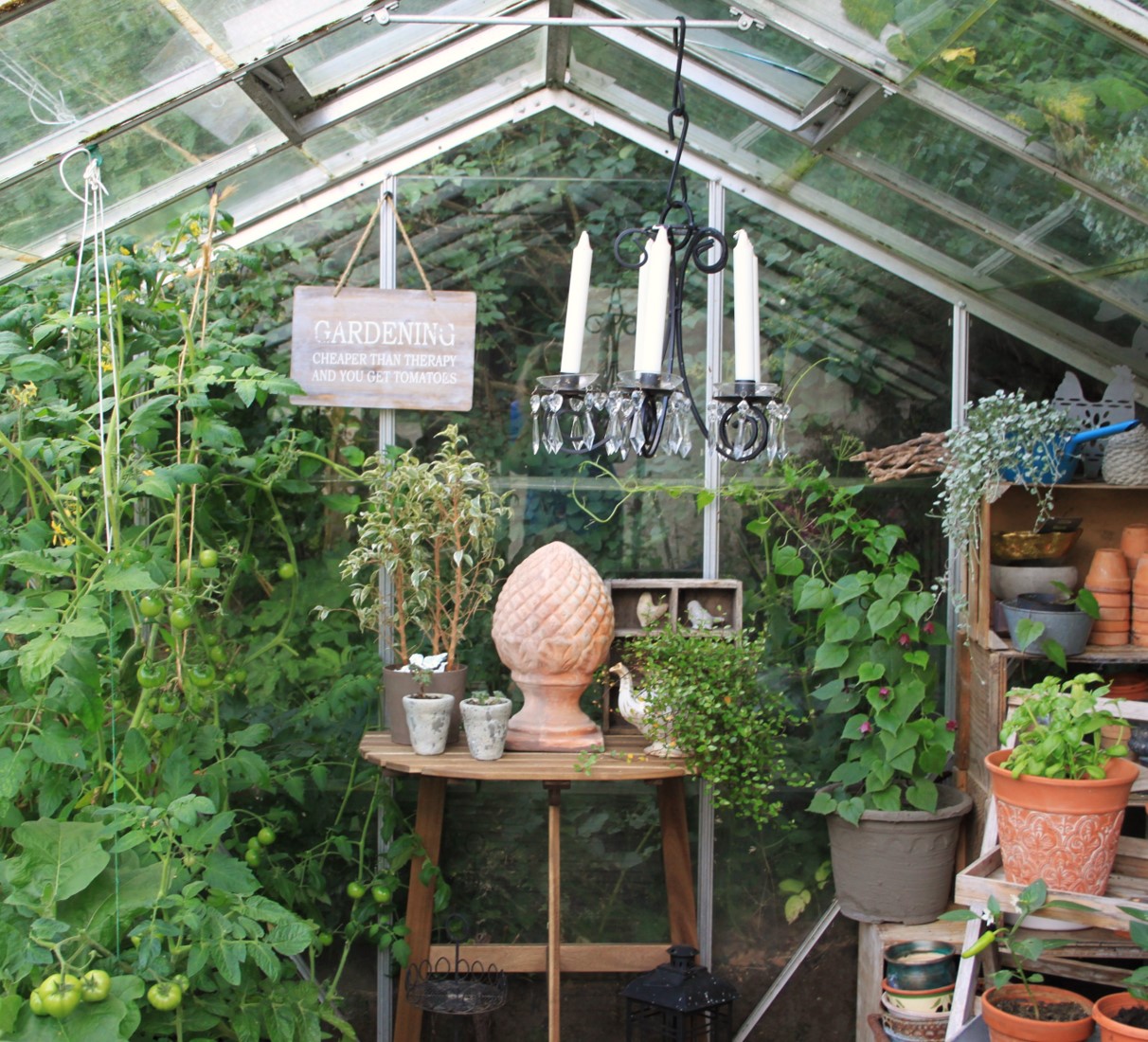 Der er endnu mange trillebøre fyldt med blade, der skal køres ud på marken, men man har vel lov til at skulke lidt og starte med at pynte op i drivhuset? Vi går forbi der mange gange om dagen, og det er så trist der helt uden pynt.