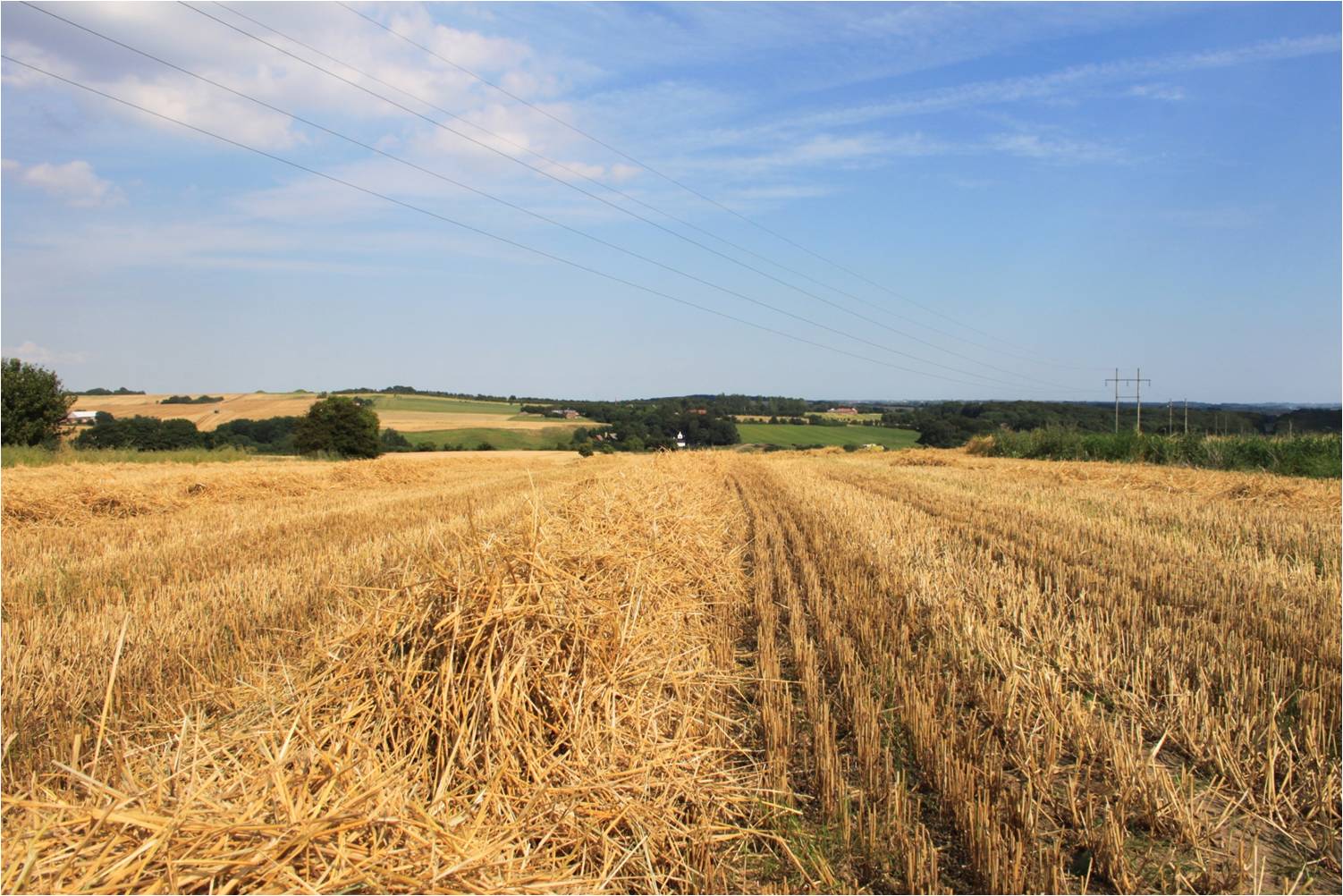 Lørdag eftermiddag. Absolut ikke stille mere. Mejetærskeren brøler og støver.