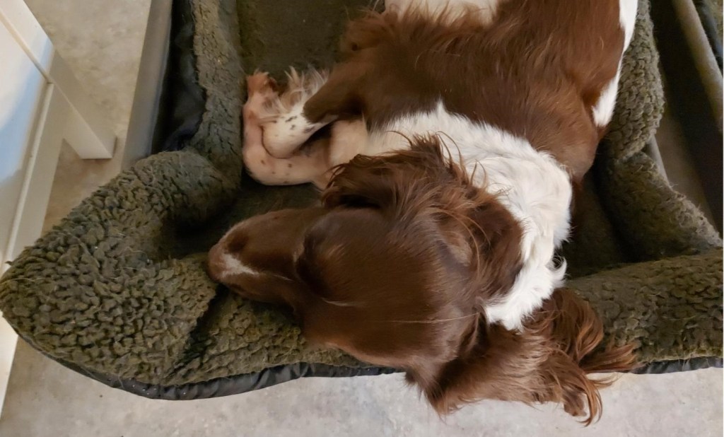 Rosie er hjemme igen efter operationen. Vi hentede hende på Tilst Dyrehospital i går formiddags. Alt gik, som det skulle, men hun er selvfølgelig slatten som en karklud og sover det meste af tiden. Det er godt, for man heler godt, når man sover.