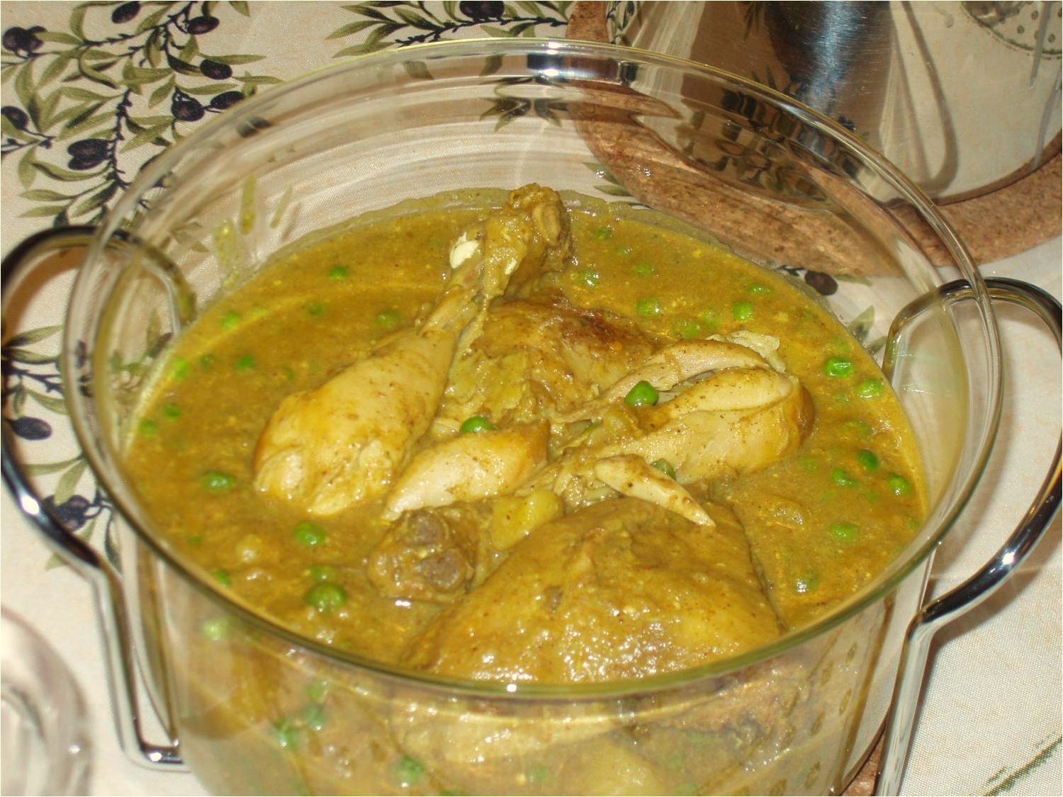 Kylling i krydret og hot yoghurtsovs – med ærter og kartofler i retten og ris til. Solid kost af den slags, der kan mætte både smagsløg og mave og give den indre varme.