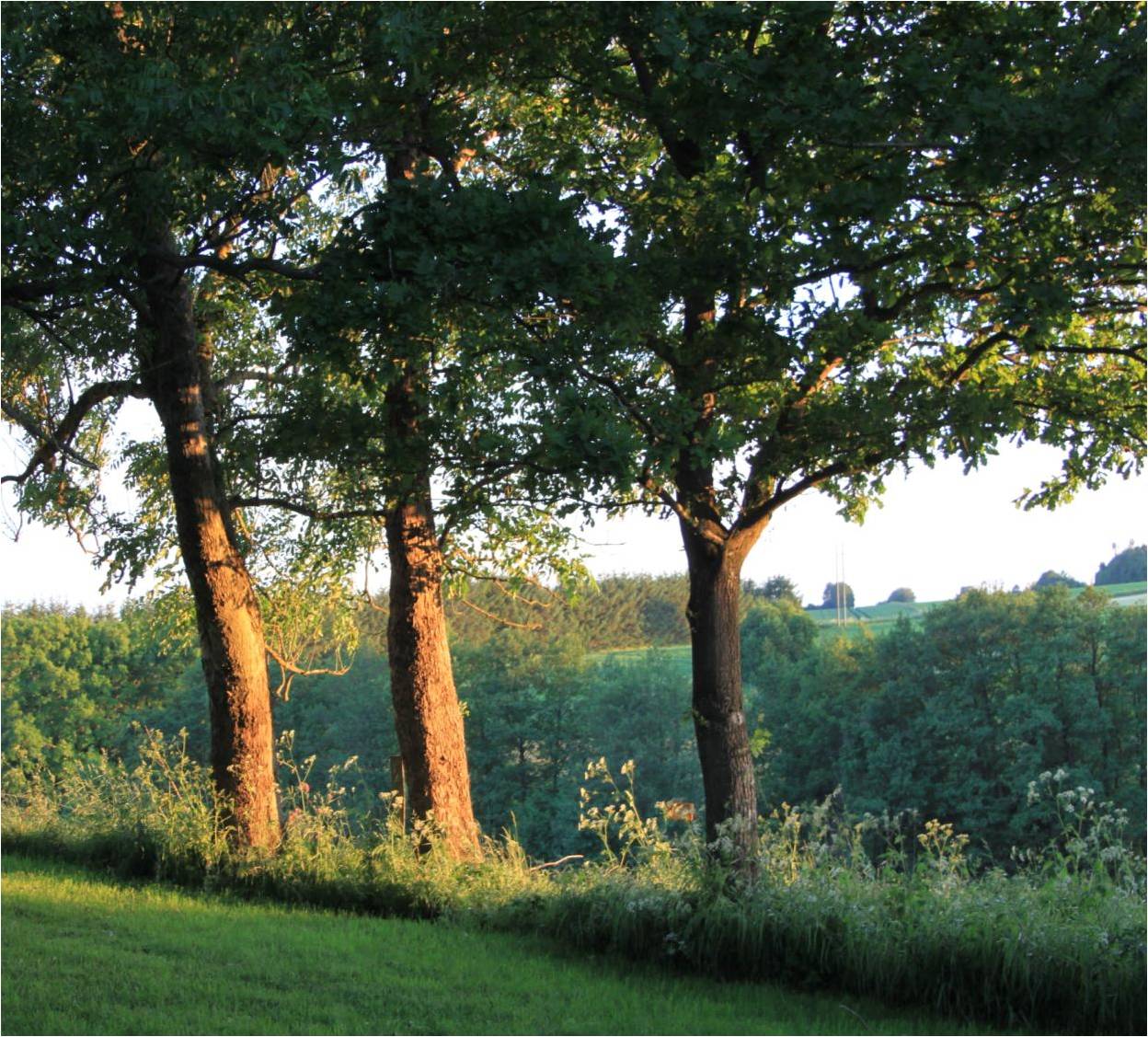 En sommerstorm. Kort og dramatisk. Heldigvis kort. Sådan et uvejr er mere voldsomt, når man bor, hvor der både er vidt udsyn og store træer. Blæsten tuder, træerne svajer faretruende, og vinden pisker regnen ind gennem ådalen.