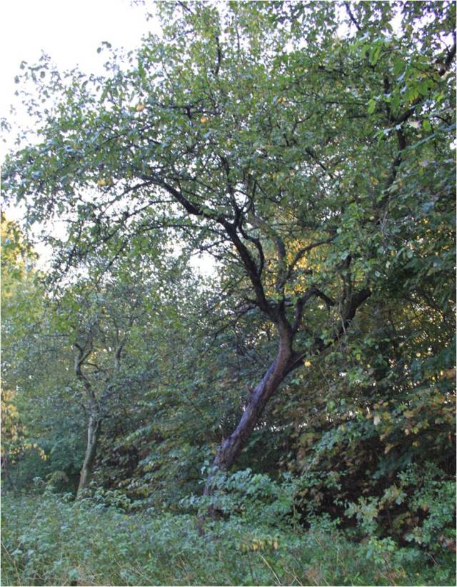 Æblerne rasler ned fra det alt for høje, gamle æbletræ, der står i resterne af det, der engang var en æblehave. Æblerne hænger langt, langt oppe,