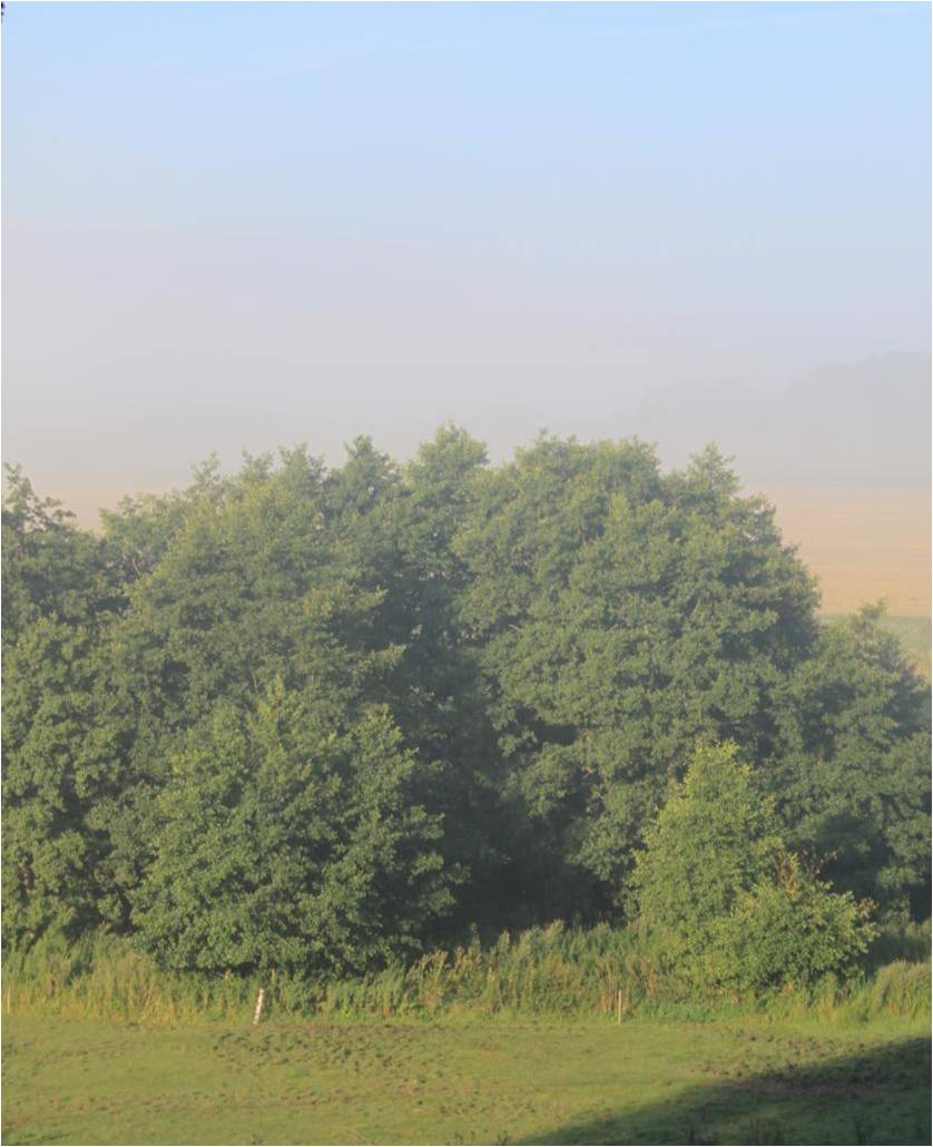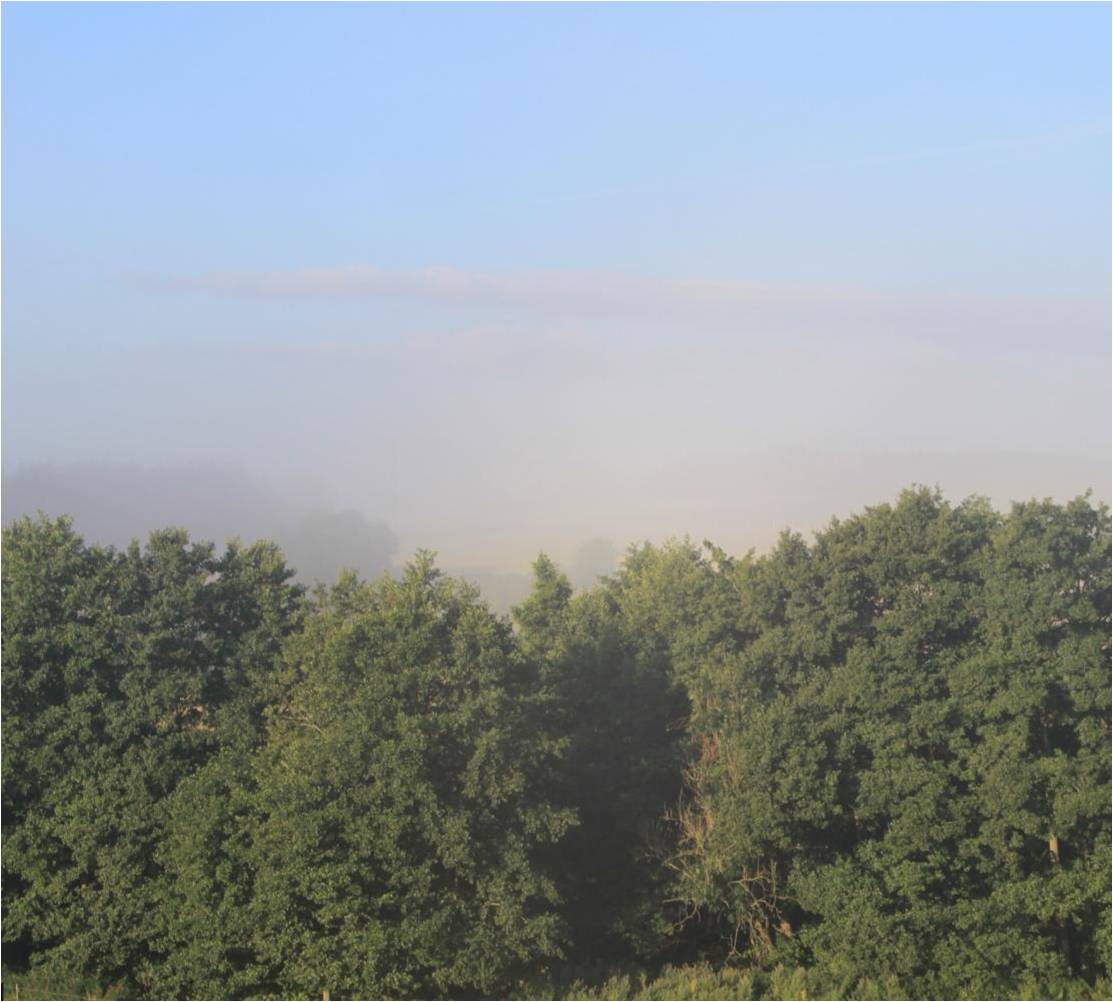 Tæt tåge, der letter i takt med, at solen står op over bakkekammen. Klokken seks ligger tågen tykt, klokken ni er den væk. Tågen hyller det hele ind i et nærmest mystisk skær, der dæmper lydene omkring en og sender lyde langt væk fra tydeligt igennem.