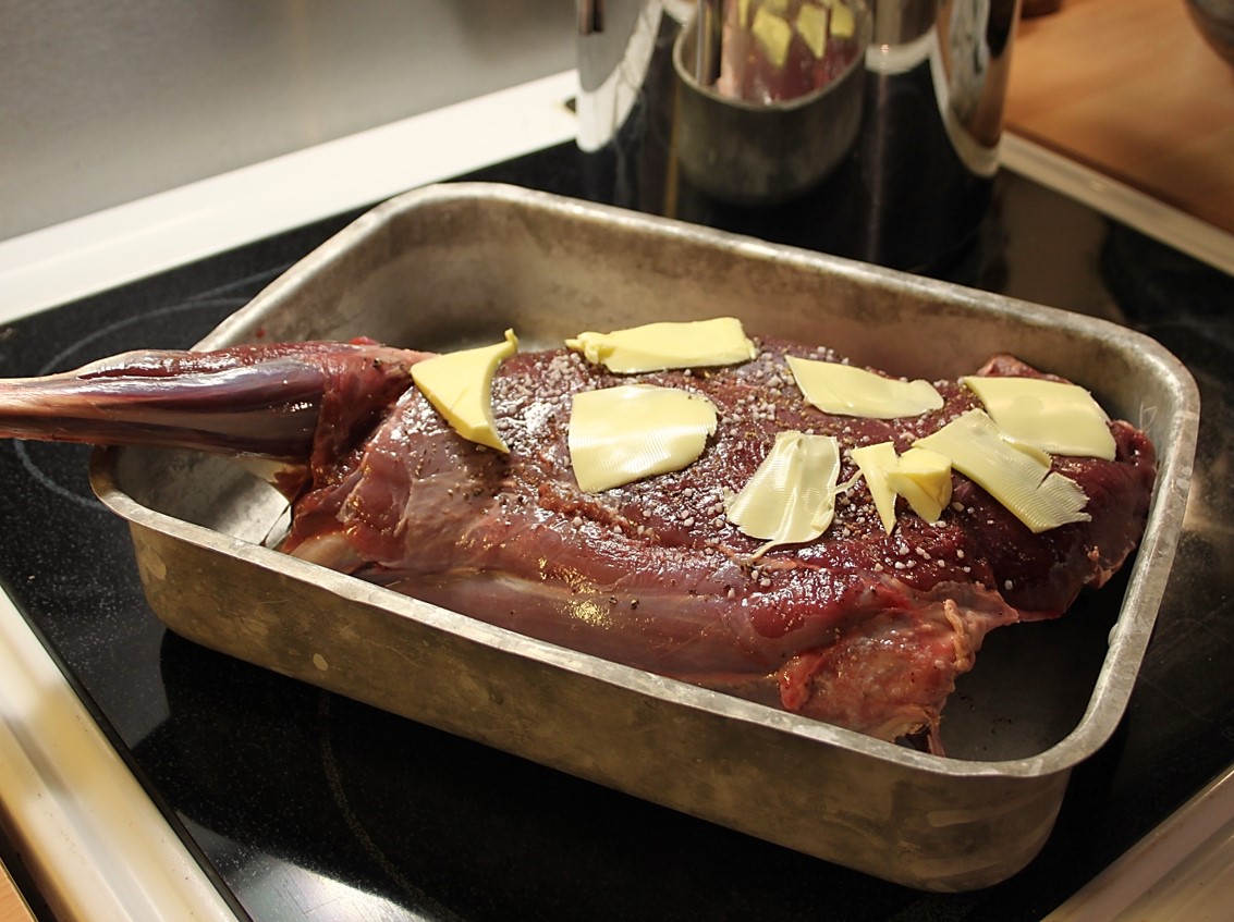 Sild med karrysalat til at starte med, efterfulgt af en buffet med helstegt dyrekølle