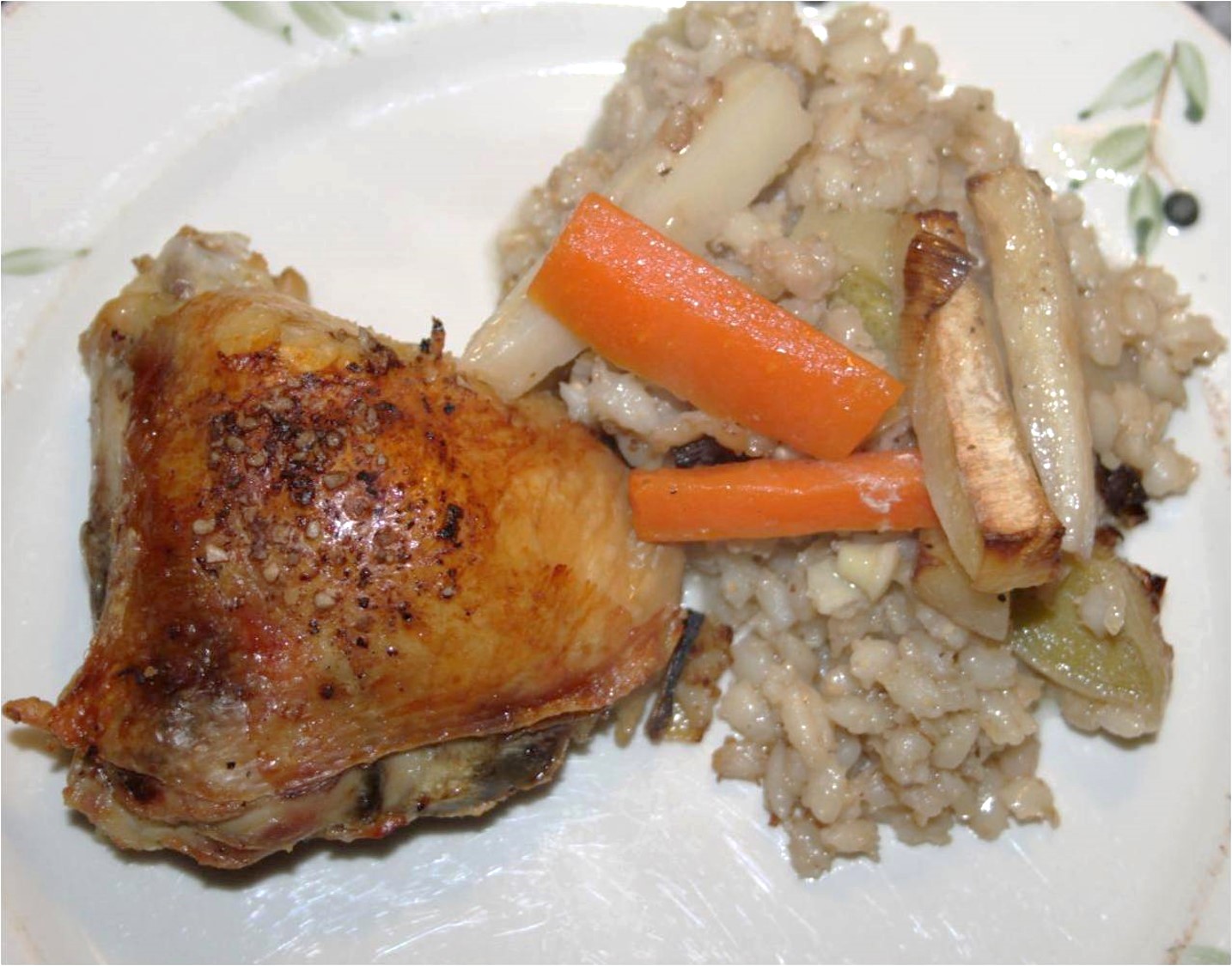 Fortsæt med at læse “Sprød topping til rodfrugtmos med mandler, parmesan og rosmarin”Kylling på grøntsagsbund med perlebyg